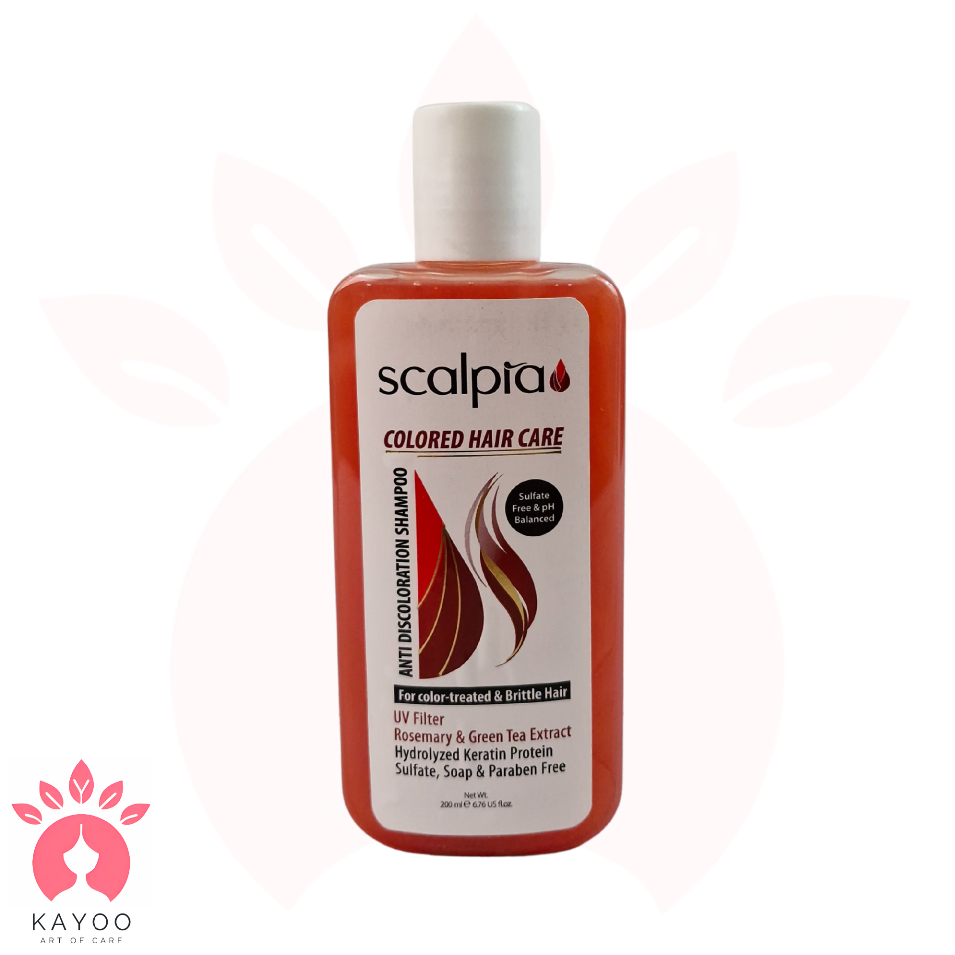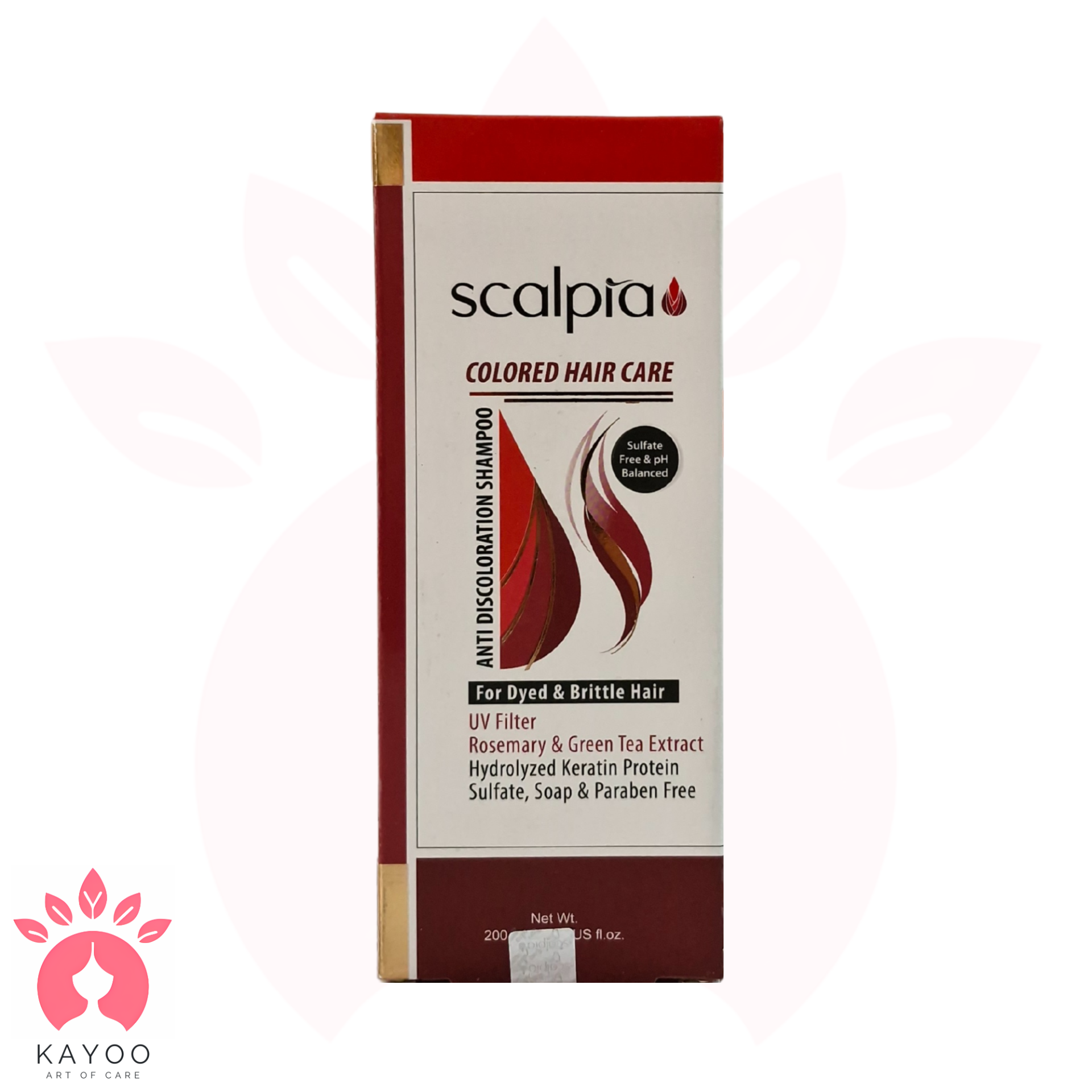 شامپو مخصوص موهای رنگ شده اسکالپیا محصولی تخصصی برای مراقبت از موهای رنگ‌شده، مش، دکلره و هایلایت شده است. این شامپو فاقد سولفات و نمک بوده و با شویندگی ملایم خود، از کاهش شدت رنگ مو جلوگیری می‌کند. فرمولاسیون غنی‌شده آن با ترکیبات مغذی، نرمی، لطافت و انعطاف‌پذیری موها را حفظ کرده و از خشکی و آسیب ناشی از رنگ مو جلوگیری می‌کند.